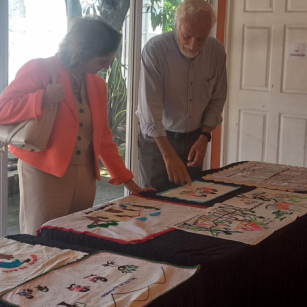 Conoció los avances del proyecto Cartografía Femenina del Exilio y la Repatriación, que cuenta con el apoyo de AECID, el cual se desarrolla en el departamento de Chalatenango con mujeres bordadoras.