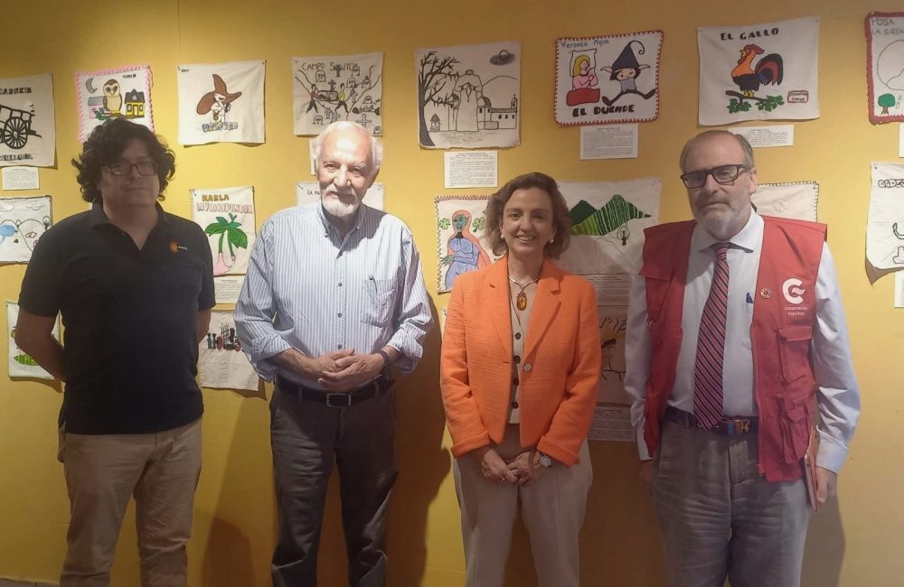 En su visita al MUPI, junto a su equipo, Fernando Rey, coordinador general de Agencia Española de Cooperación Internacional para el Desarrollo (AECID); Álvaro Ortega, director del Centro Cultural de España en El Salvador (CCESV), y Leticia Macua, también del CCESV.