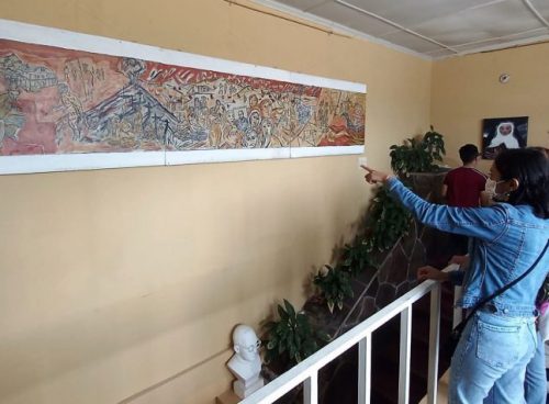 Artistas y docentes de Sonsonate visitan exposición «Telegramas al Cielo» Monseñor Romero, en el MUPI